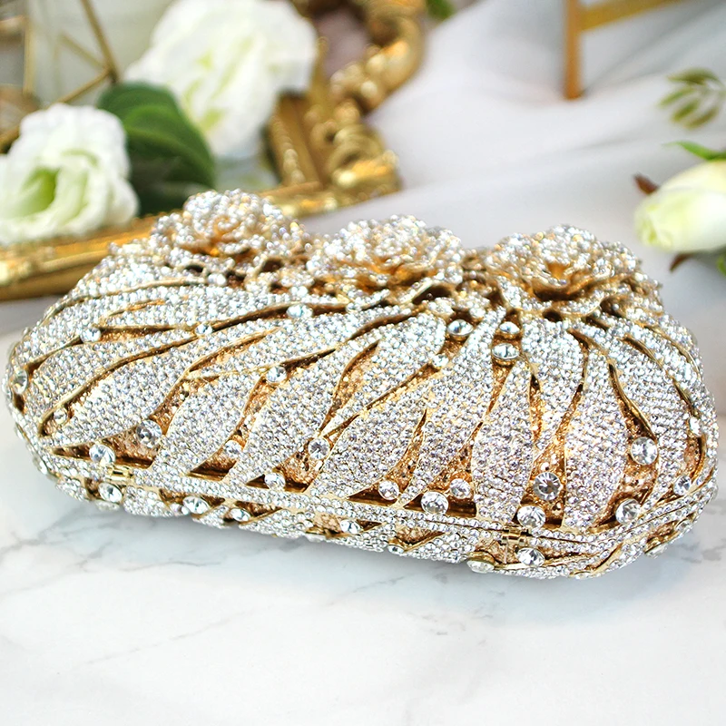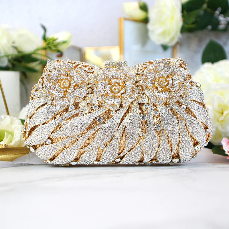 Best 2017 new winter custom handbag Crossbody Bag diamond metal chain flower satchel Dinner Bag female s