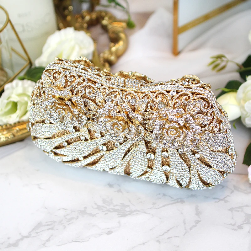 HOT Sale 2017 new winter custom handbag Crossbody Bag diamond metal chain flower satchel Dinner Bag female s