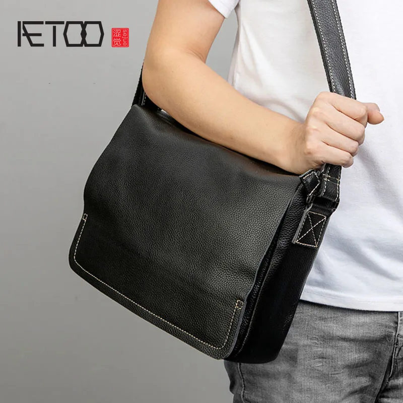 HIGH QUALITY AETOO Leather shoulder bag men's slant bag horizontal leather men's bag business casual soft leathe