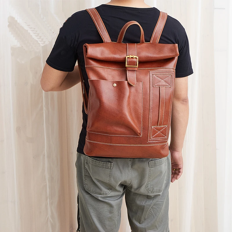 BEST JOGOJOS New Leather Laptop Backpack Genuine Leather Men's Backpack Men Cowhide Travel School Bag Fa