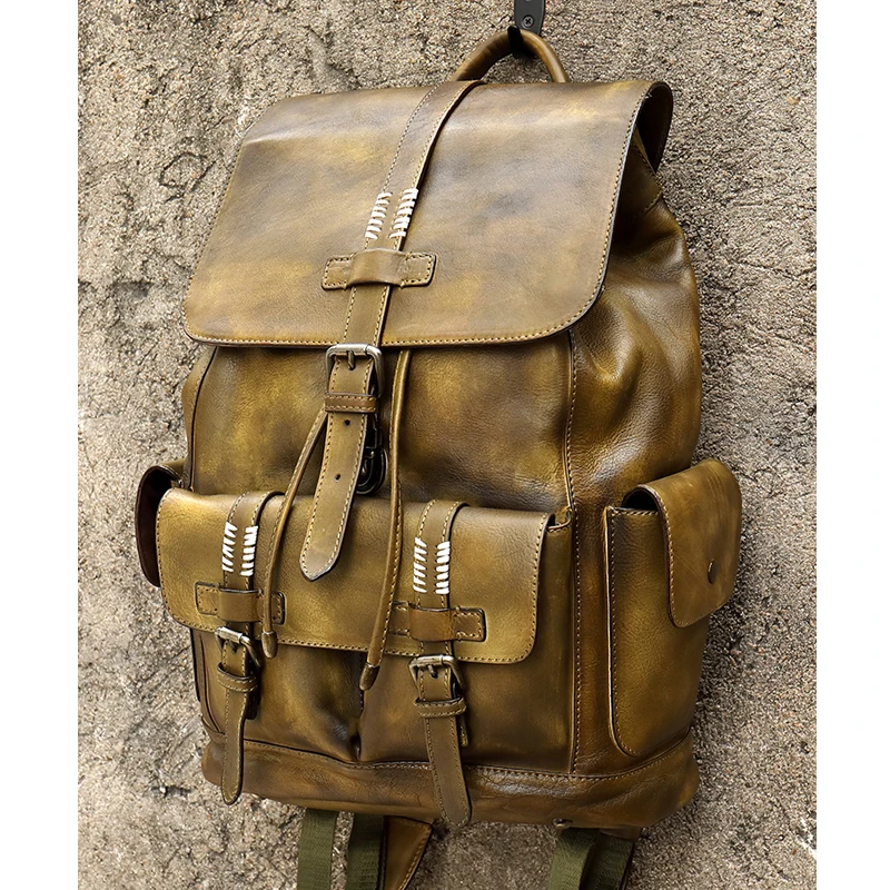 Men's Backpack Military Style Travel Bag Luxury Mens Cow Leather backpack Large Capacity Retro Shou