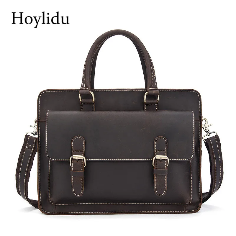 Best Quality Genuine Leather Men's Business Briefcase Vintage Casual Office Laptop Handbags Large Capacity Trave