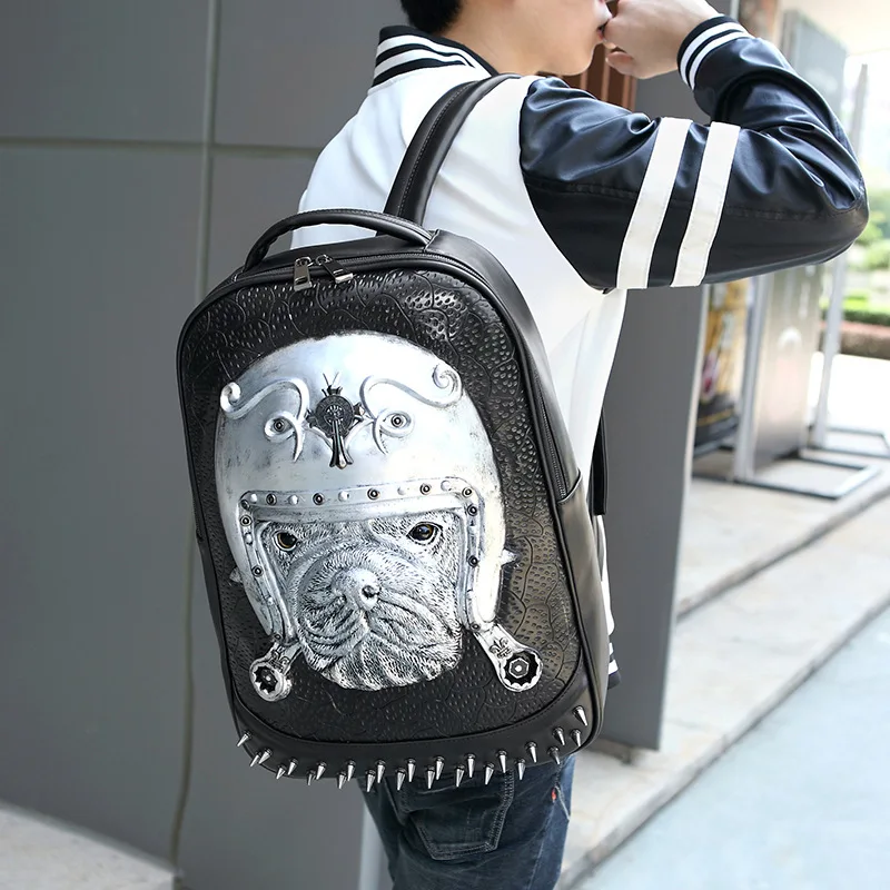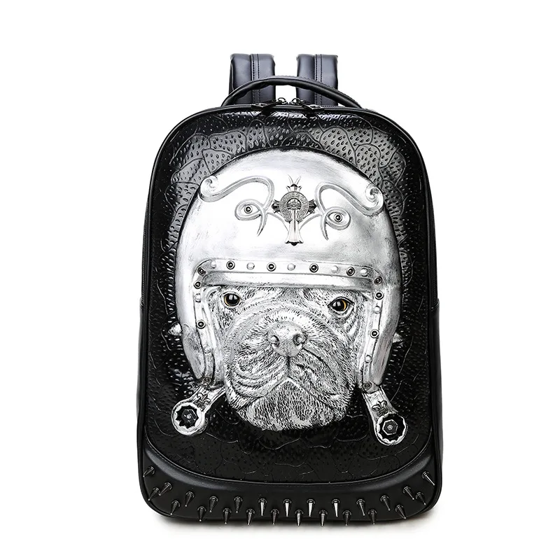 Best Pu Backpack Rivet Men and Women 3d Animal Pattern Computer Backpack Creative Dog Shape Shoulder Bag