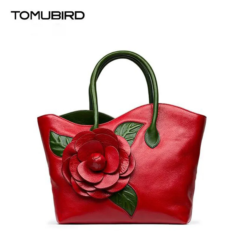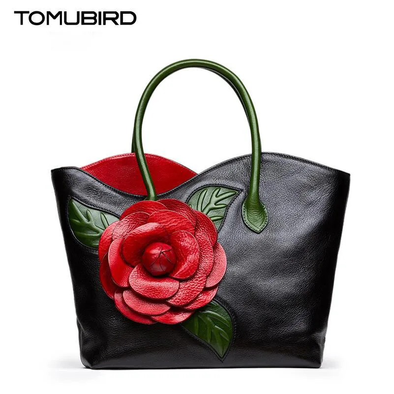 BEST SELLER TOMUBIRD superior cowhide leather Designer Inspired Ladies Handmade Dimensional flower Tote Handmad