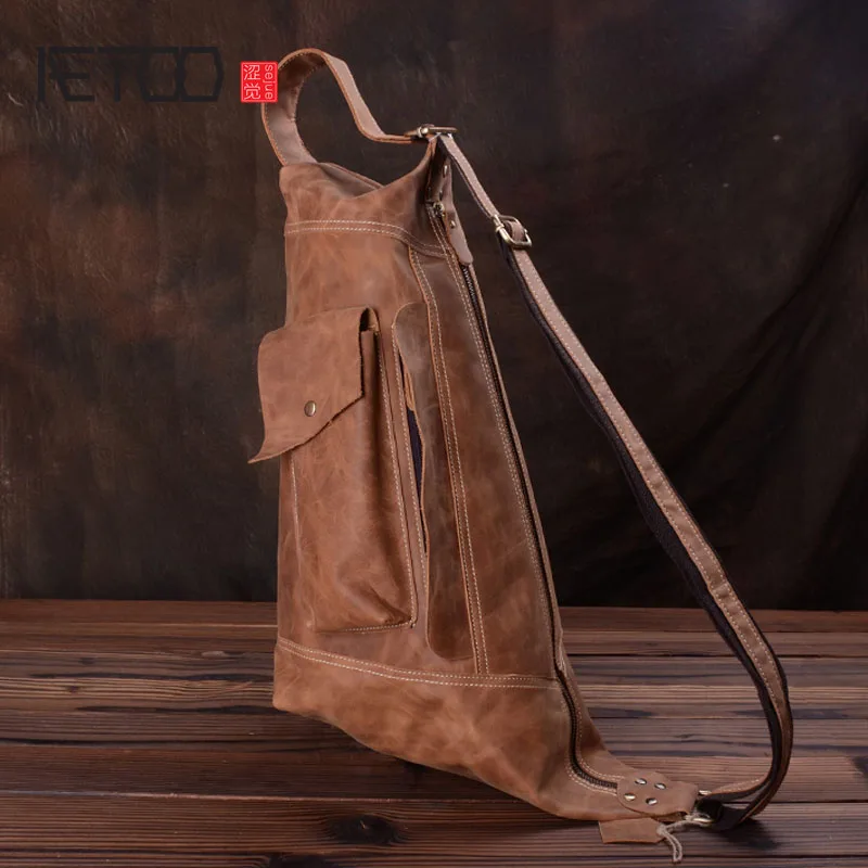 AETOO Original men's leather shoulder oblique package retro mad horse skin men's first layer of lea