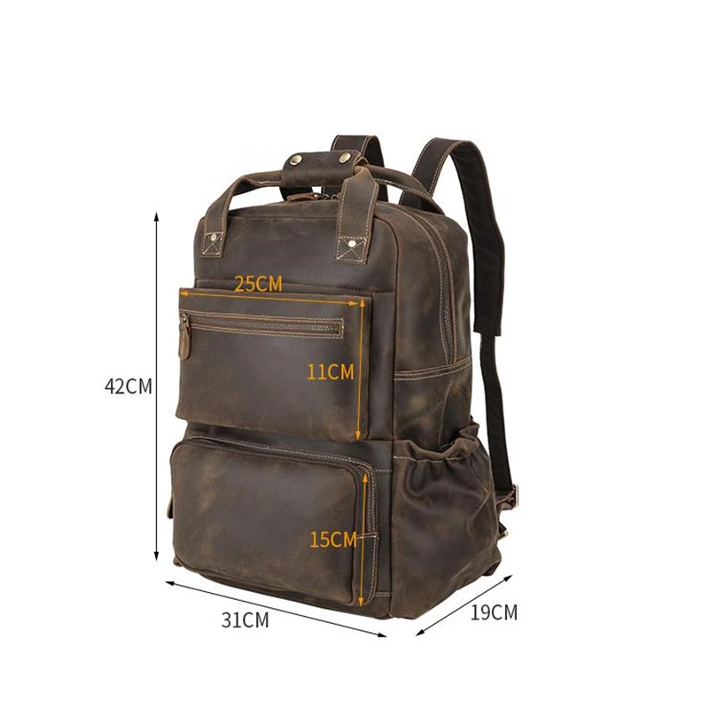 Hot Sale Men's Large Capacity Genuine Leather Backapck Vintage Handmade Thick Cowhide Business 17'' Laptop C