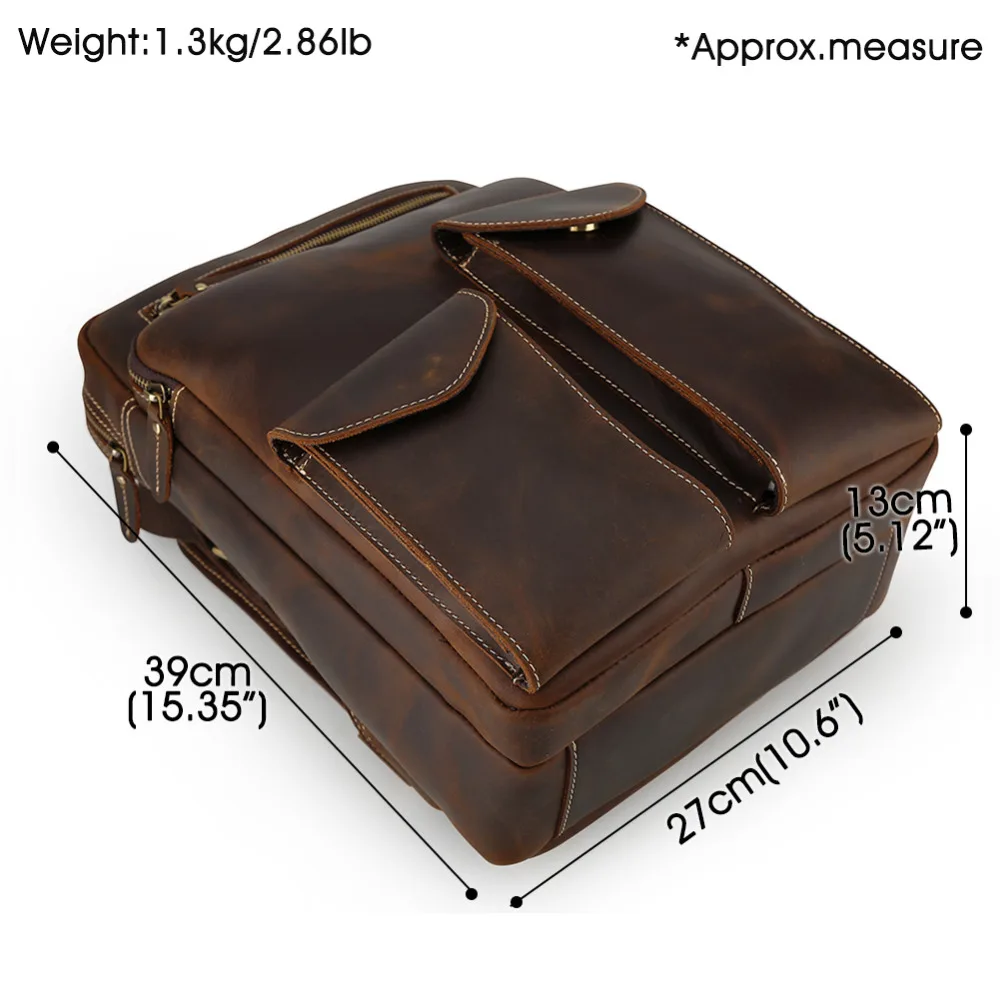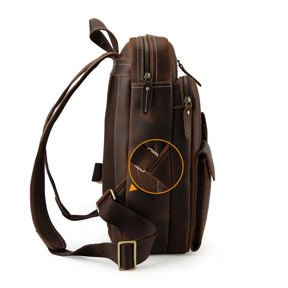 FOLGANDROS Men's Genuine Leather Backpack Handmade Vintage Crazy Horse Leather Backpack Multifuncti