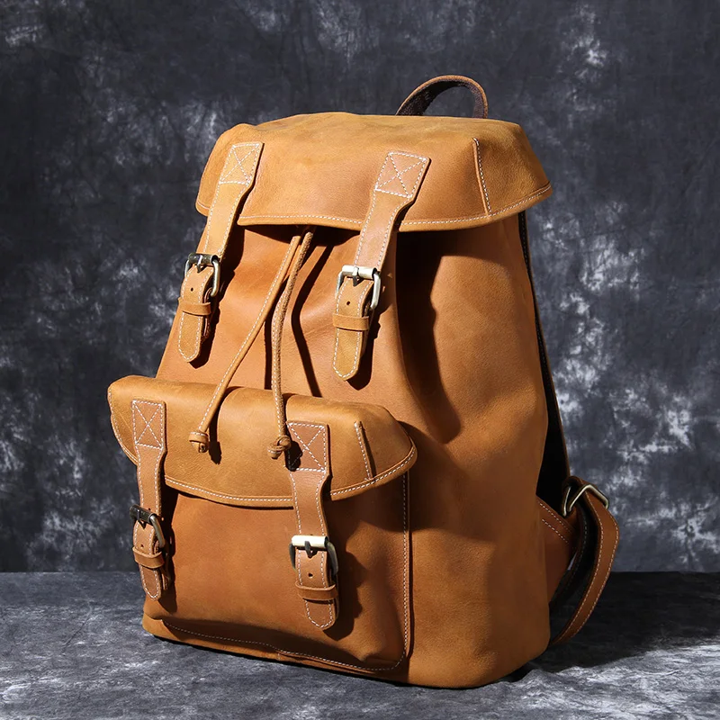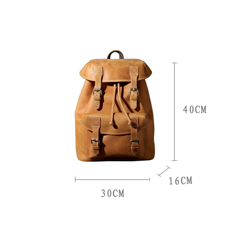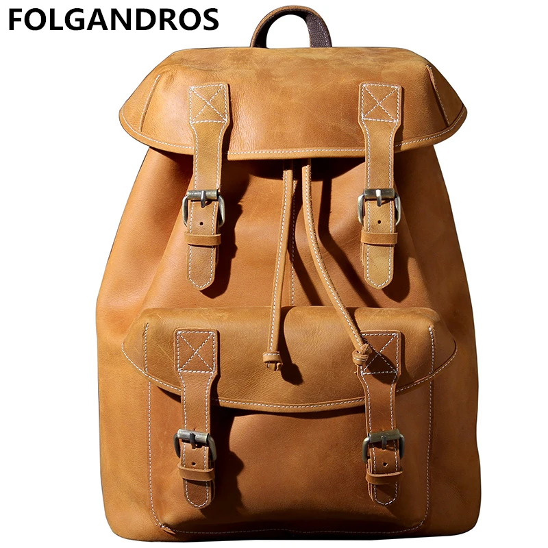 Men Crazy Horse Genuine Leather Backpack Vintage Large Capacity Laptop Multifunction Travel Shouler