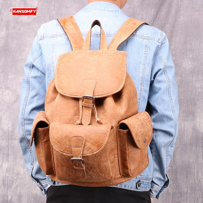 HOT SALE Retro Fashion Genuine leather Men's backpacks outdoor men shoulder bag large capacity brown leather