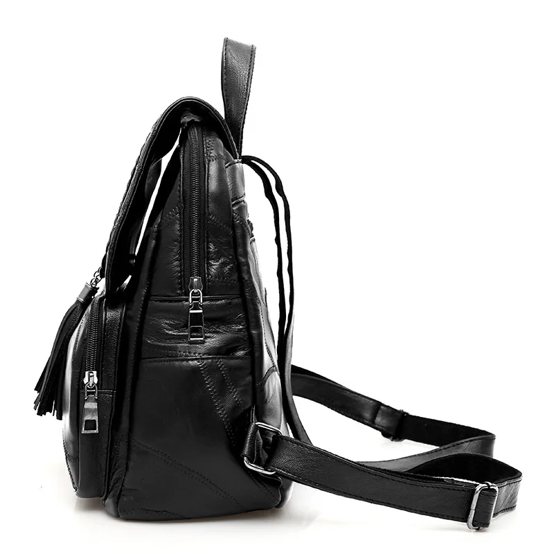 100% Genuine leather Big capacity backpack for women weaving tassel sheepskin travel bag sac transp