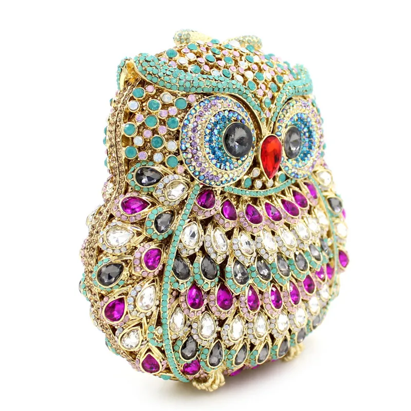 Review Top Animal Owl Evening Bag For Women Luxury Crystal Cocktail Party Purse Handbag High-end Full Diamond
